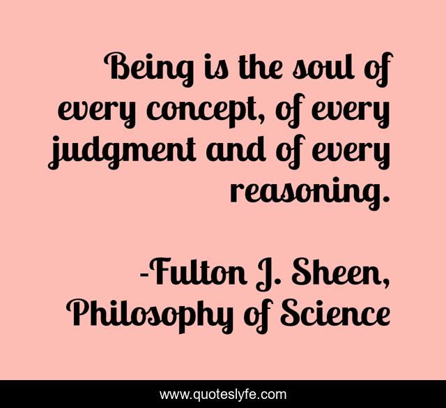 This page presents the quote "Being is the soul of every concept, of every judgment and of every reasoning.". Author of this quote is Fulton J. Sheen, Philosophy of Science. .