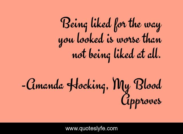 "Amanda Hocking, My Blood Approves Quotes." Quoteslyfe.com, 2025. Fri. 05 Dec. 2025. <https://www.quoteslyfe.com/quote/Being-liked-for-the-way-you-looked-3223>.