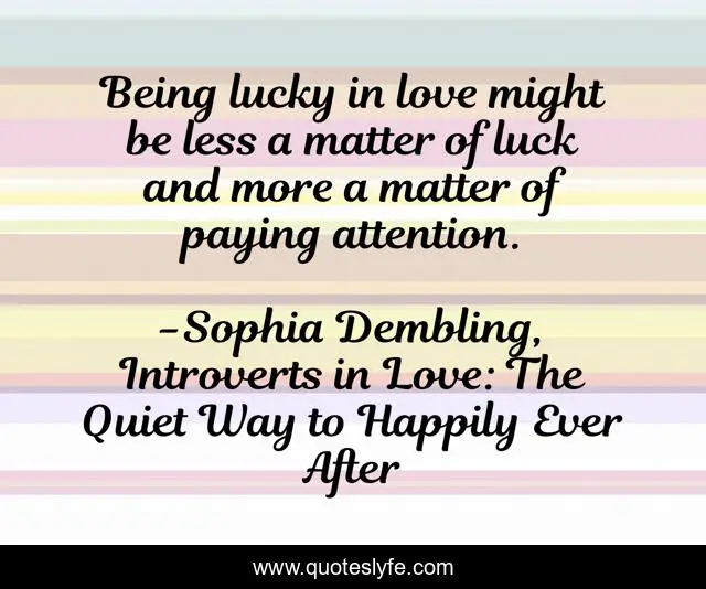 "Sophia Dembling, Introverts in Love: The Quiet Way to Happily Ever After Quotes." Quoteslyfe.com, 2025. Sat. 06 Dec. 2025. <https://www.quoteslyfe.com/quote/Being-lucky-in-love-might-be-less-239596>.
