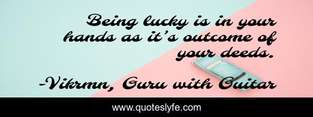 This page presents the quote "Being lucky is in your hands as it’s outcome of your deeds.". Author of this quote is Vikrmn, Guru with Guitar. This quote is about gwg, vikram, positive, motivational, deeds, lucky, ca-vikram-verma, guru-with-guitar, vikrmn,.