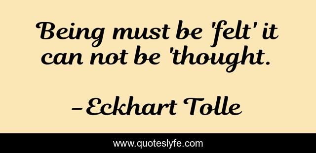 This page presents the quote "Being must be 'felt' it can not be 'thought.". Author of this quote is Eckhart Tolle. This quote is about being, thinking, eckhart-tolle, feelings,.