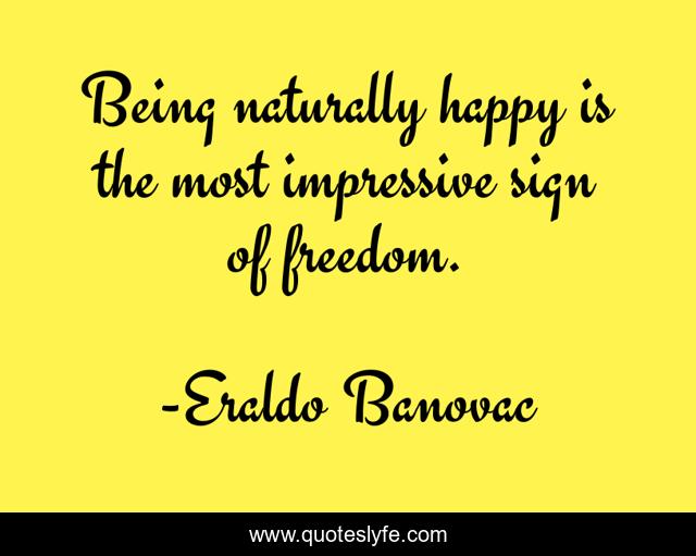 This page presents the quote "Being naturally happy is the most impressive sign of freedom.". Author of this quote is Eraldo Banovac. This quote is about freedom, happiness,.