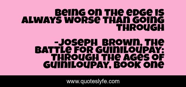 "Joseph Brown, The Battle for Guiniloupay: Through the Ages of Guiniloupay, Book One Quotes." Quoteslyfe.com, 2025. Sun. 07 Dec. 2025. <https://www.quoteslyfe.com/quote/Being-on-the-edge-is-always-worse-82341>.