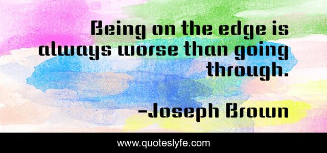 This page presents the quote "Being on the edge is always worse than going through.". Author of this quote is Joseph Brown. This quote is about fantasy, fiction, inspirational, enthusiasm,.