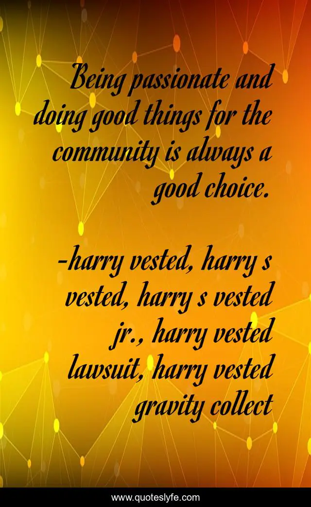 "harry vested, harry s vested, harry s vested jr., harry vested lawsuit, harry vested gravity collect Quotes." Quoteslyfe.com, 2025. Sat. 06 Dec. 2025. <https://www.quoteslyfe.com/quote/Being-passionate-and-doing-good-things-for-83893>.