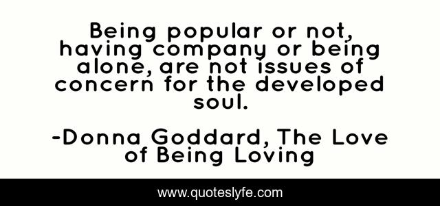 This page presents the quote "Being popular or not, having company or being alone, are not issues of concern for the developed soul.". Author of this quote is Donna Goddard, The Love of Being Loving. This quote is about company, popularity, soul, maturity, friendship-and-love, independence,.