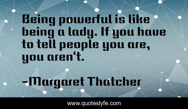 "Margaret Thatcher Quotes." Quoteslyfe.com, 2025. Sat. 06 Dec. 2025. <https://www.quoteslyfe.com/quote/Being-powerful-is-like-being-a-lady-88052>.
