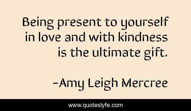 This page presents the quote "Being present to yourself in love and with kindness is the ultimate gift.". Author of this quote is Amy Leigh Mercree. This quote is about kindness, self-love, quotes-de-la-vida, love, gift, quote-of-the-day, quotes-for-instagram, quotes-tumblr, enthusiasm,.