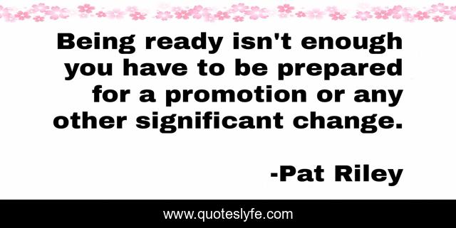 This page presents the quote "Being ready isn't enough you have to be prepared for a promotion or any other significant change.". Author of this quote is Pat Riley. This quote is about be prepared, promotion,.