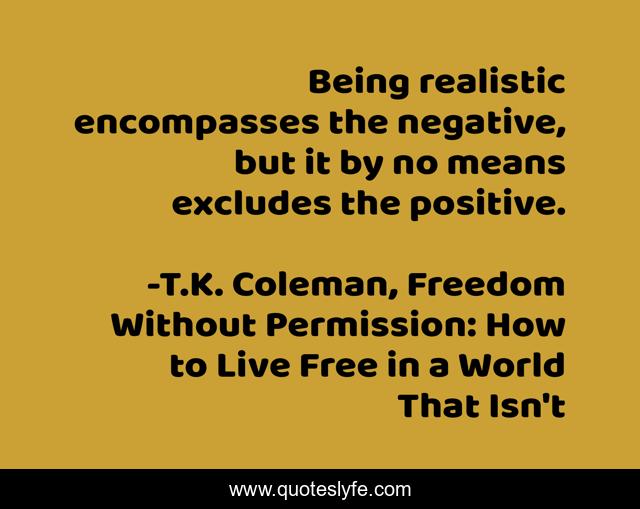 "T.K. Coleman, Freedom Without Permission: How to Live Free in a World That Isn't Quotes." Quoteslyfe.com, 2025. Mon. 15 Dec. 2025. <https://www.quoteslyfe.com/quote/Being-realistic-encompasses-the-negative-but-it-94838>.