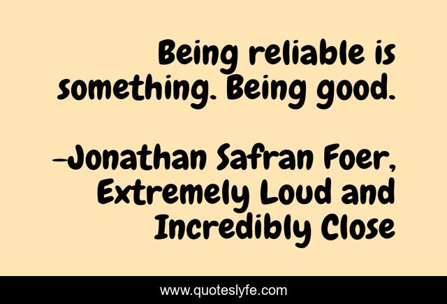 This page presents the quote "Being reliable is something. Being good.". Author of this quote is Jonathan Safran Foer, Extremely Loud and Incredibly Close. This quote is about reliable, good, something,.