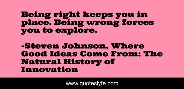 "Steven Johnson, Where Good Ideas Come From: The Natural History of Innovation Quotes." Quoteslyfe.com, 2026. Fri. 16 Jan. 2026. <https://www.quoteslyfe.com/quote/Being-right-keeps-you-in-place-Being-144814>.