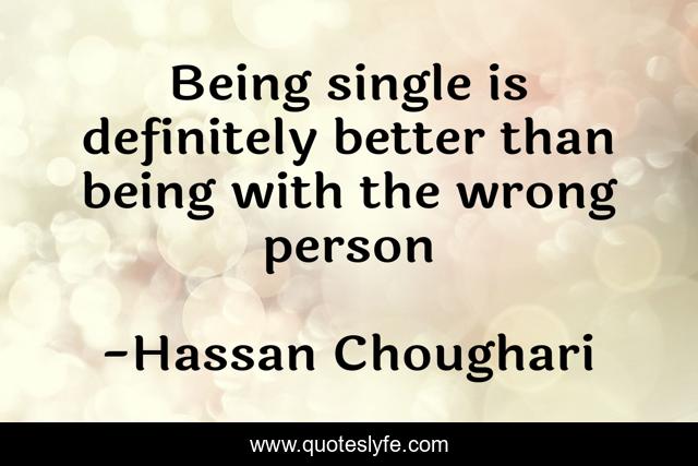 This page presents the quote "Being single is definitely better than being with the wrong person". Author of this quote is Hassan Choughari. This quote is about relationships, love, people, single, truth, affection,.