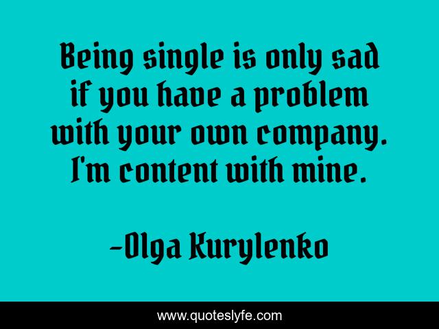 This page presents the quote "Being single is only sad if you have a problem with your own company. I'm content with mine.". Author of this quote is Olga Kurylenko. This quote is about problem, company,.