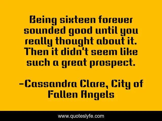 "Cassandra Clare, City of Fallen Angels Quotes." Quoteslyfe.com, 2025. Mon. 08 Dec. 2025. <https://www.quoteslyfe.com/quote/Being-sixteen-forever-sounded-good-until-you-184182>.