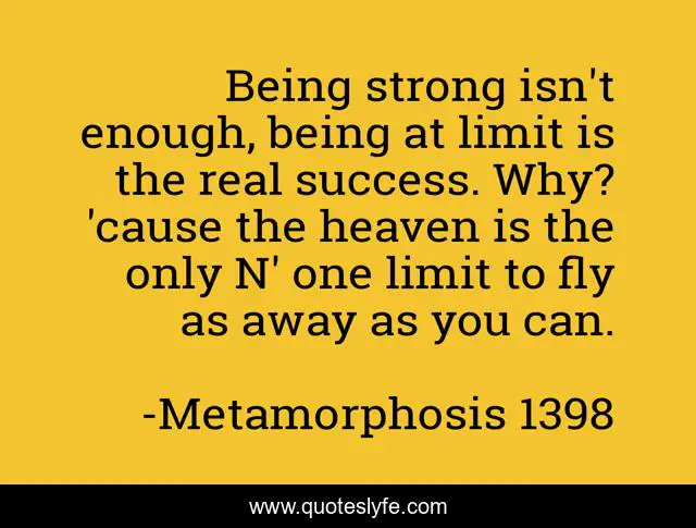 This page presents the quote "Being strong isn't enough, being at limit is the real success. Why? 'cause the heaven is the only N' one limit to fly as away as you can.". Author of this quote is Metamorphosis 1398. .
