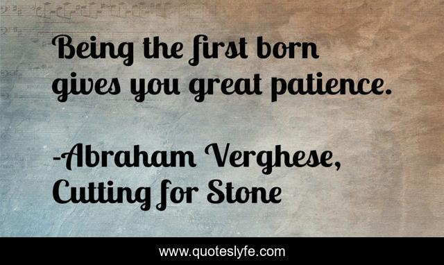 This page presents the quote "Being the first born gives you great patience.". Author of this quote is Abraham Verghese, Cutting for Stone. .