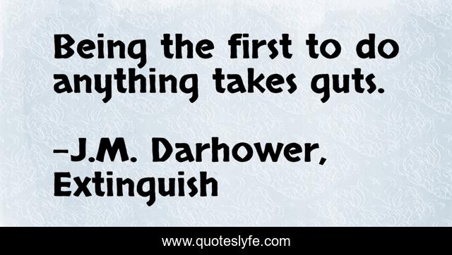 This page presents the quote "Being the first to do anything takes guts.". Author of this quote is J.M. Darhower, Extinguish. This quote is about fearless, extinguish, j-m-darhower, bravery,.