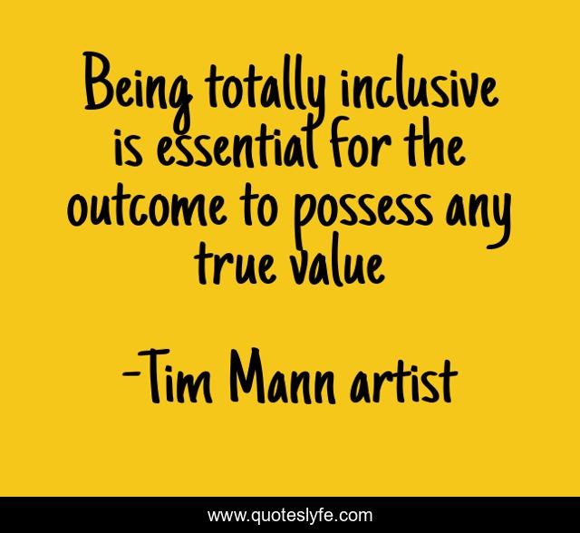 "Tim Mann artist Quotes." Quoteslyfe.com, 2025. Fri. 05 Dec. 2025. <https://www.quoteslyfe.com/quote/Being-totally-inclusive-is-essential-for-the-44520>.