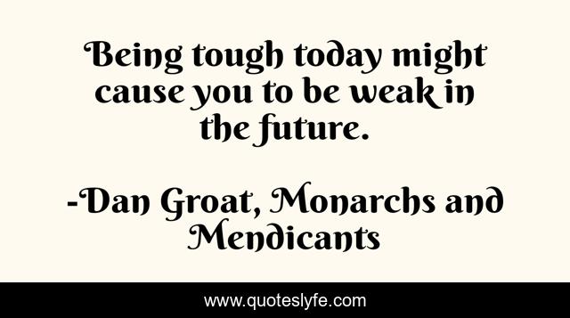 This page presents the quote "Being tough today might cause you to be weak in the future.". Author of this quote is Dan Groat, Monarchs and Mendicants. This quote is about tough, toughness, weakness, weak, future, today,.
