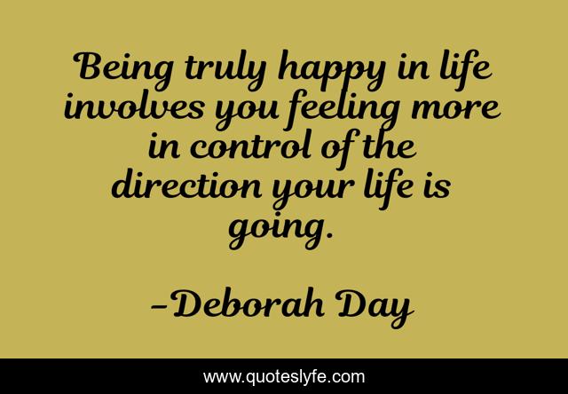 This page presents the quote "Being truly happy in life involves you feeling more in control of the direction your life is going.". Author of this quote is Deborah Day. This quote is about happy, well-being, purpose, happiness, fulfillment,.