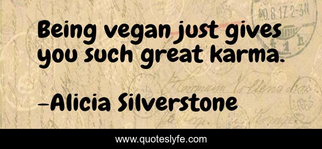 This page presents the quote "Being vegan just gives you such great karma.". Author of this quote is Alicia Silverstone. This quote is about karma, vegan,.