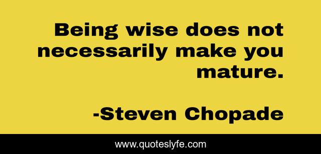 This page presents the quote "Being wise does not necessarily make you mature.". Author of this quote is Steven Chopade. .