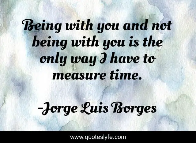 This page presents the quote "Being with you and not being with you is the only way I have to measure time.". Author of this quote is Jorge Luis Borges. This quote is about love, affection, time,.