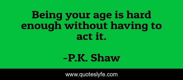 "P.K. Shaw Quotes." Quoteslyfe.com, 2025. Fri. 05 Dec. 2025. <https://www.quoteslyfe.com/quote/Being-your-age-is-hard-enough-without-209311>.