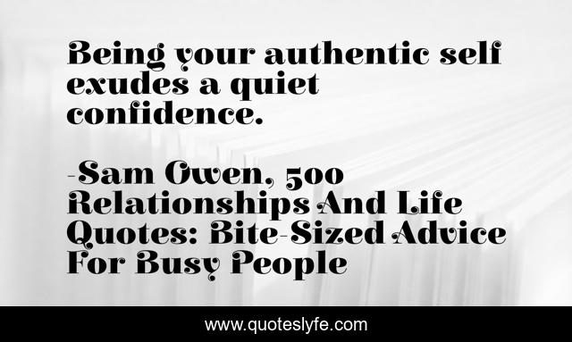 "Sam Owen, 500 Relationships And Life Quotes: Bite-Sized Advice For Busy People Quotes." Quoteslyfe.com, 2025. Fri. 05 Dec. 2025. <https://www.quoteslyfe.com/quote/Being-your-authentic-self-exudes-a-quiet-77833>.
