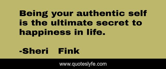This page presents the quote "Being your authentic self is the ultimate secret to happiness in life.". Author of this quote is Sheri Fink. This quote is about secrets, inspirational, authenticity, enthusiasm, happiness, secret-of-life,.