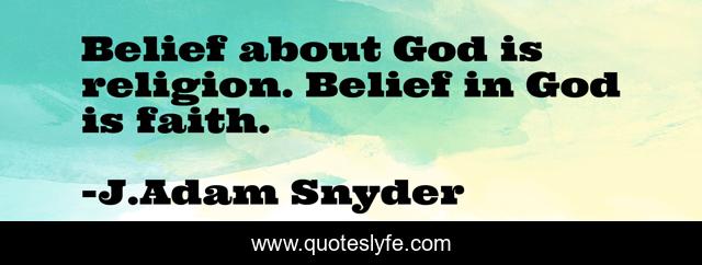 This page presents the quote "Belief about God is religion. Belief in God is faith.". Author of this quote is J.Adam Snyder. This quote is about faith, quotes-about-god, j-adam-snyder, religion,.