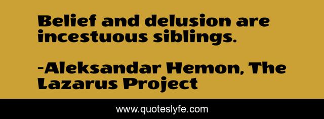 This page presents the quote "Belief and delusion are incestuous siblings.". Author of this quote is Aleksandar Hemon, The Lazarus Project. This quote is about delusions, belief,.