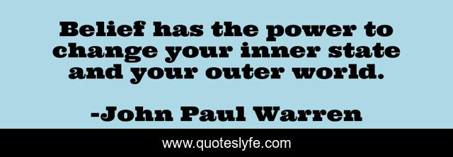 This page presents the quote "Belief has the power to change your inner state and your outer world.". Author of this quote is John Paul Warren. This quote is about leadership, voice-of-the-nations,.