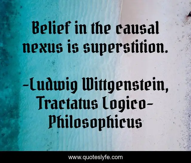 "Ludwig Wittgenstein, Tractatus Logico-Philosophicus Quotes." Quoteslyfe.com, 2025. Sun. 07 Dec. 2025. <https://www.quoteslyfe.com/quote/Belief-in-the-causal-nexus-is-superstition-110981>.