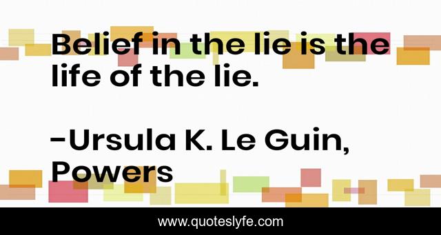 This page presents the quote "Belief in the lie is the life of the lie.". Author of this quote is Ursula K. Le Guin, Powers. This quote is about lies, belief, truth,.