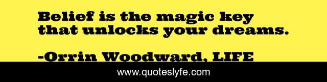 This page presents the quote "Belief is the magic key that unlocks your dreams.". Author of this quote is Orrin Woodward, LIFE. This quote is about dream, belief,.