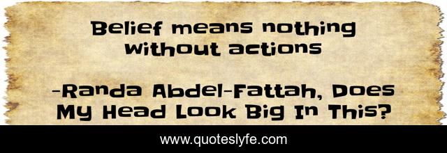 This page presents the quote "Belief means nothing without actions". Author of this quote is Randa Abdel-Fattah, Does My Head Look Big In This?. This quote is about actions, belive,.