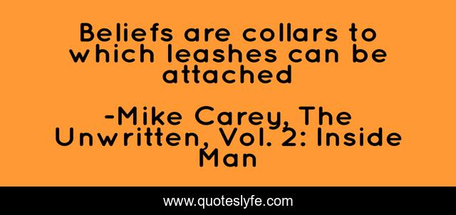 "Mike Carey, The Unwritten, Vol. 2: Inside Man Quotes." Quoteslyfe.com, 2025. Mon. 08 Dec. 2025. <https://www.quoteslyfe.com/quote/Beliefs-are-collars-to-which-leashes-can-230492>.