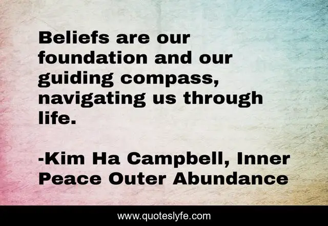 "Kim Ha Campbell, Inner Peace Outer Abundance Quotes." Quoteslyfe.com, 2025. Mon. 08 Dec. 2025. <https://www.quoteslyfe.com/quote/Beliefs-are-our-foundation-and-our-guiding-57557>.