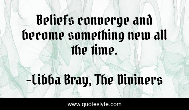 This page presents the quote "Beliefs converge and become something new all the time.". Author of this quote is Libba Bray, The Diviners. This quote is about new-thought, beliefs,.