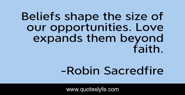 This page presents the quote "Beliefs shape the size of our opportunities. Love expands them beyond faith.". Author of this quote is Robin Sacredfire. .