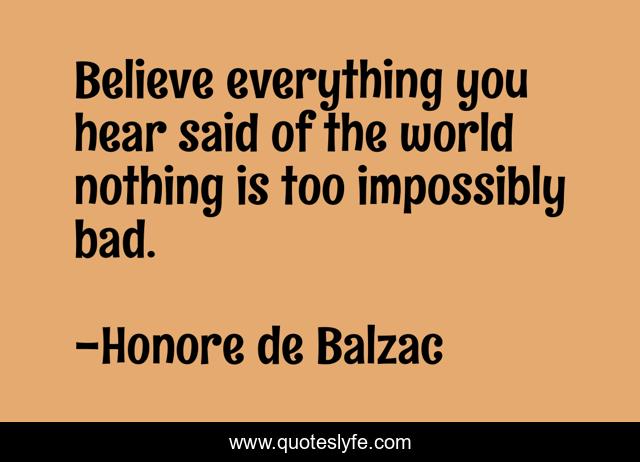 This page presents the quote "Believe everything you hear said of the world nothing is too impossibly bad.". Author of this quote is Honore de Balzac. .