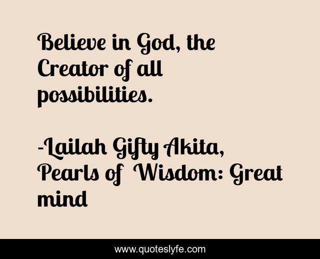 "Lailah Gifty Akita, Pearls of Wisdom: Great mind Quotes." Quoteslyfe.com, 2025. Sat. 06 Dec. 2025. <https://www.quoteslyfe.com/quote/Believe-in-God-the-Creator-of-all-84136>.