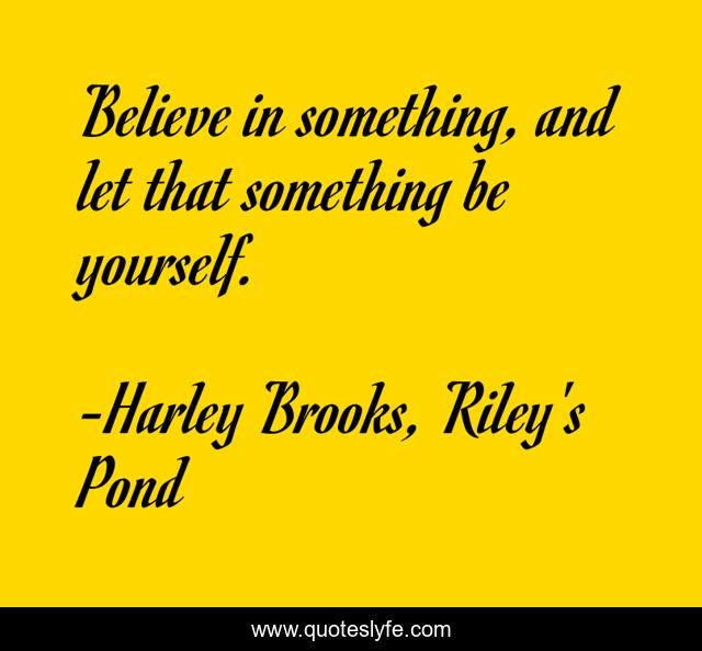 "Harley Brooks, Riley's Pond Quotes." Quoteslyfe.com, 2025. Fri. 05 Dec. 2025. <https://www.quoteslyfe.com/quote/Believe-in-something-and-let-that-something-149951>.