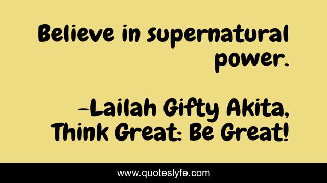 "Lailah Gifty Akita, Think Great: Be Great! Quotes." Quoteslyfe.com, 2025. Mon. 08 Dec. 2025. <https://www.quoteslyfe.com/quote/Believe-in-supernatural-power-98697>.