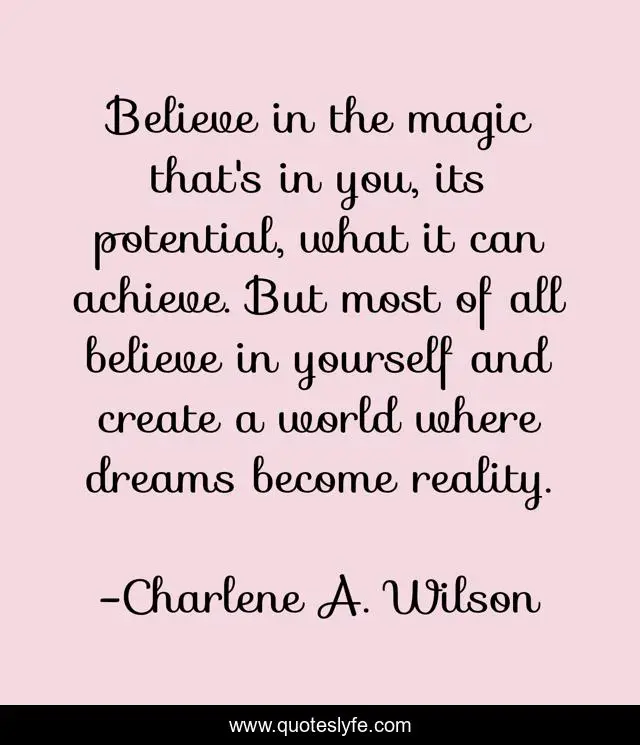 "Charlene A. Wilson Quotes." Quoteslyfe.com, 2025. Sat. 06 Dec. 2025. <https://www.quoteslyfe.com/quote/Believe-in-the-magic-that-s-in-130886>.