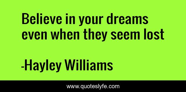 This page presents the quote "Believe in your dreams even when they seem lost". Author of this quote is Hayley Williams. This quote is about believe, hayley-williams, dreams, lost, paramore,.