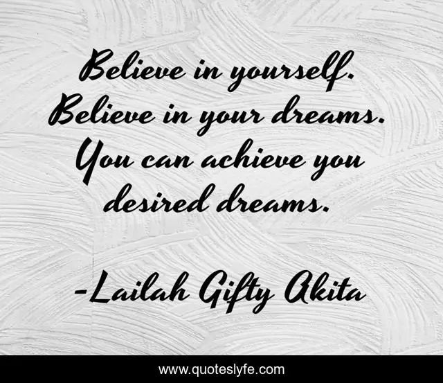 "Lailah Gifty Akita Quotes." Quoteslyfe.com, 2025. Sat. 06 Dec. 2025. <https://www.quoteslyfe.com/quote/Believe-in-yourself-Believe-in-your-dreams-109628>.