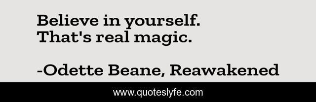 This page presents the quote "Believe in yourself. That's real magic.". Author of this quote is Odette Beane, Reawakened. This quote is about magic, belief,.
